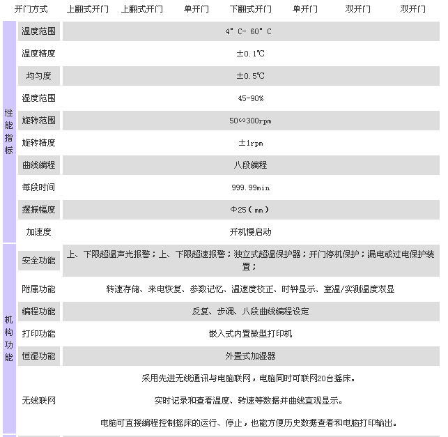无线通讯与电脑联网 + 曲线显示 + 八段编程 + 打印输出 + 恒湿 + 光照